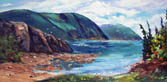 Peintre d'atmosphères plus que de lieux, je dois avouer que Terre-Neuve m'a tout de même inspirée. Pays de rivières, de mer, la brume lèche tout de même les montagnes autant que le littoral. Le Parc Gros-Morne vaut à lui seul le déplacement.
